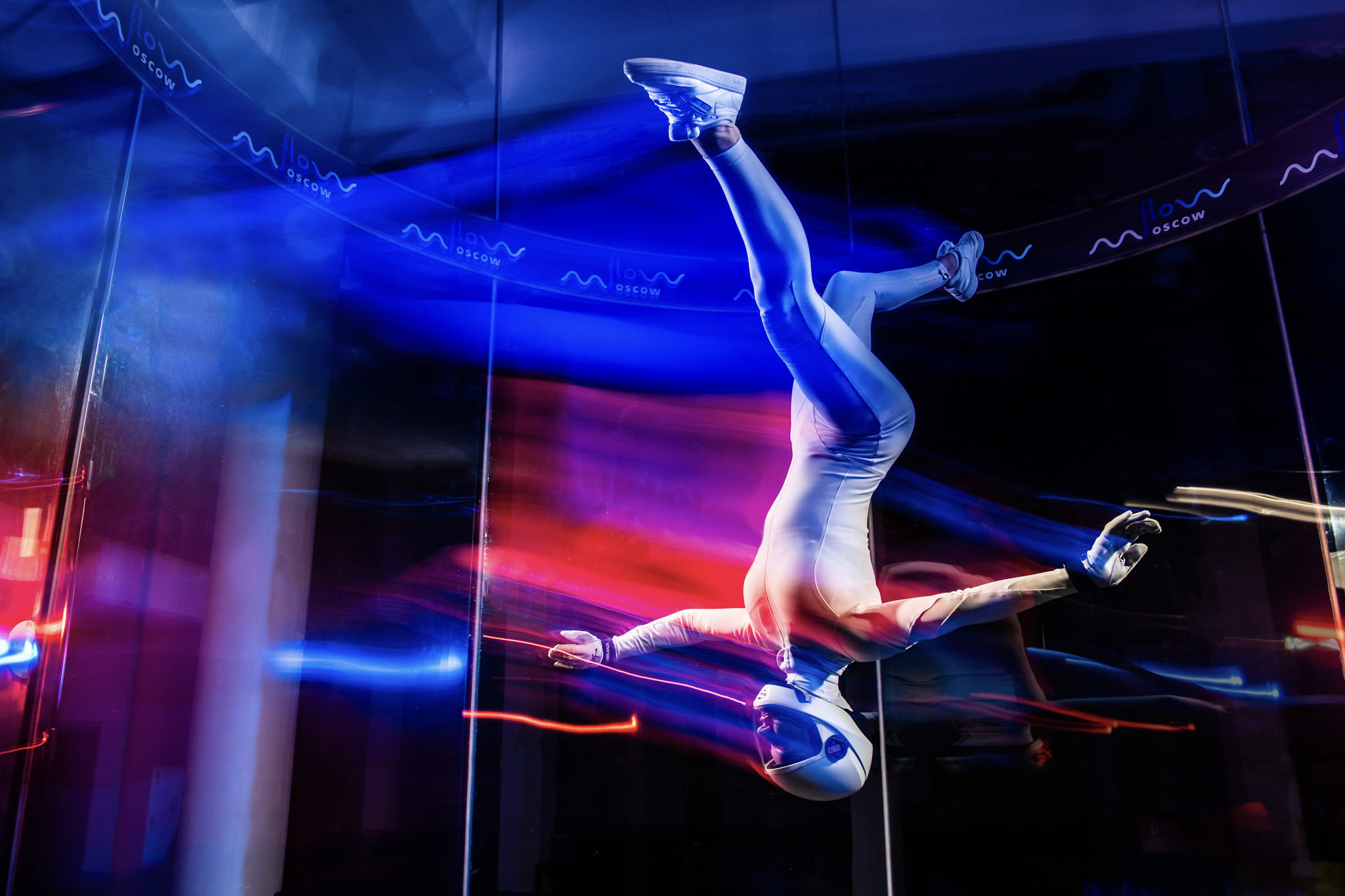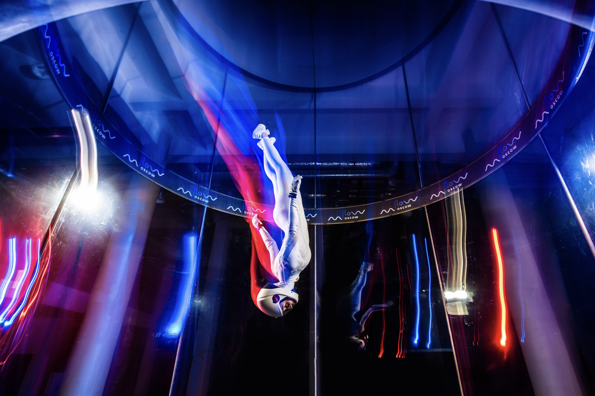 Flow Moscow is a sports and wellness center that brings together indoor adventure and relaxation under one roof. This indoor skydiving facility in Moscow features our 15 ft (4.5 m) wind tunnel installation—the largest and quietest among the seven venues operating in the city—making it a standout destination for flyers of all levels.