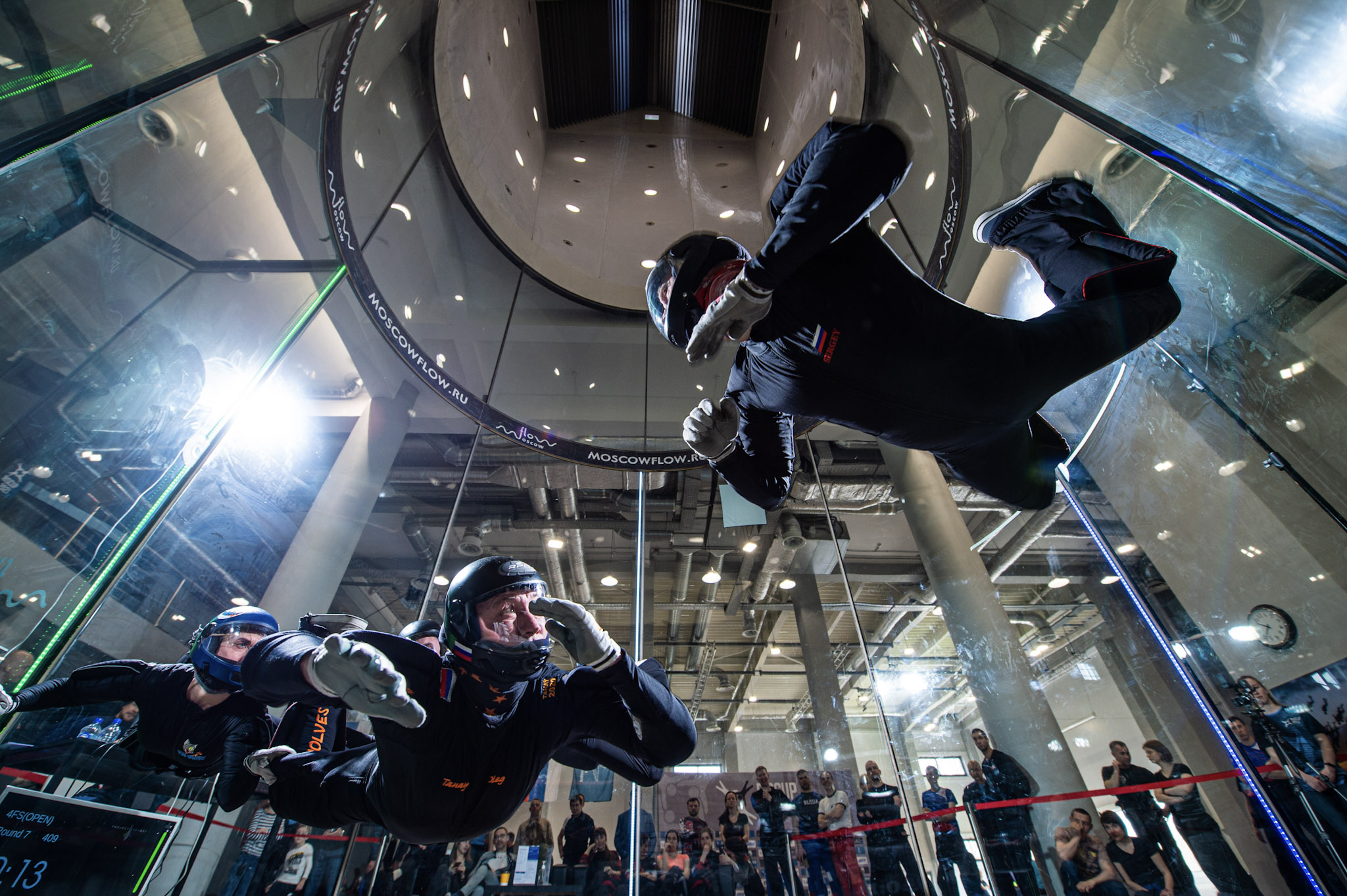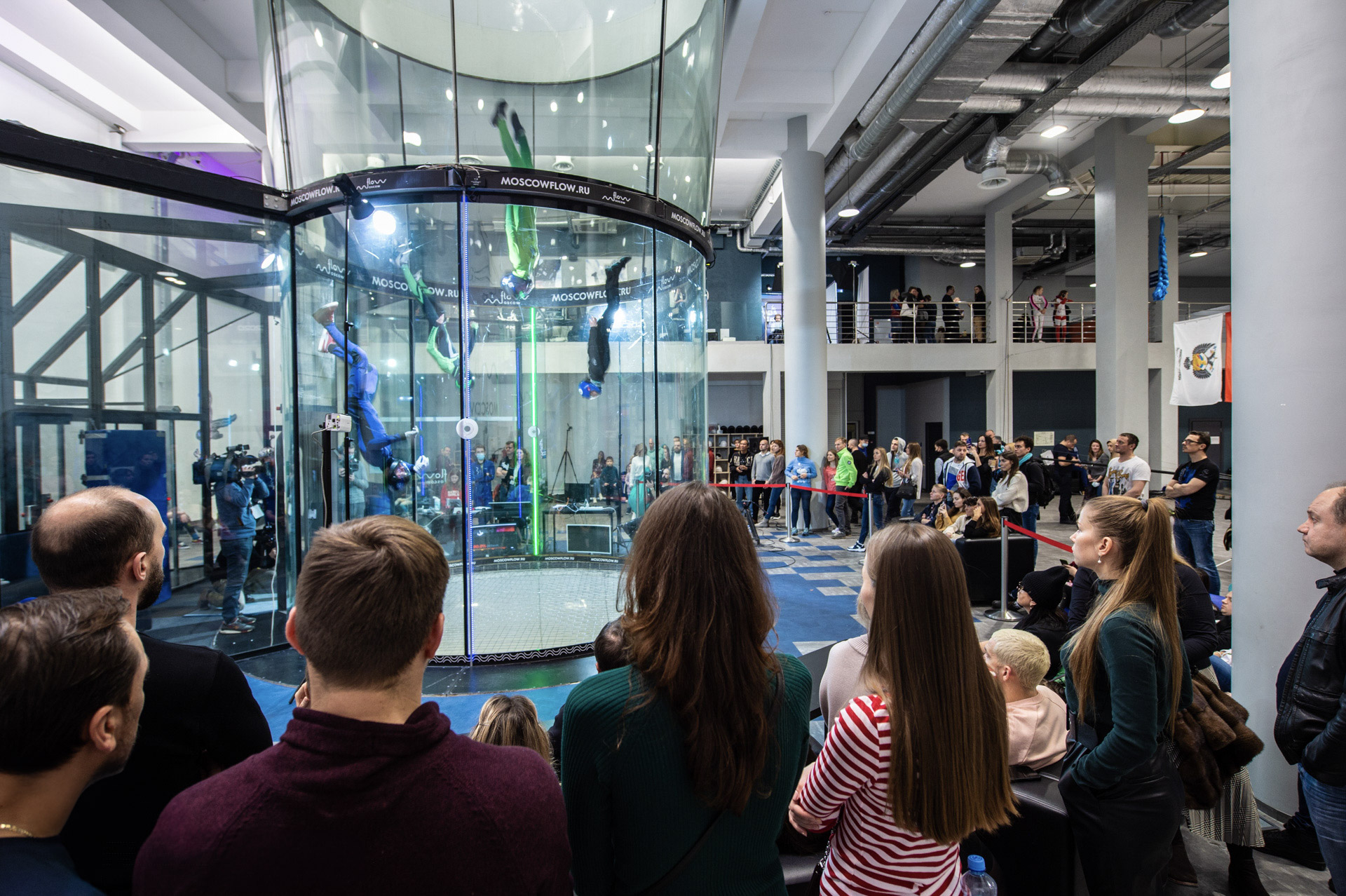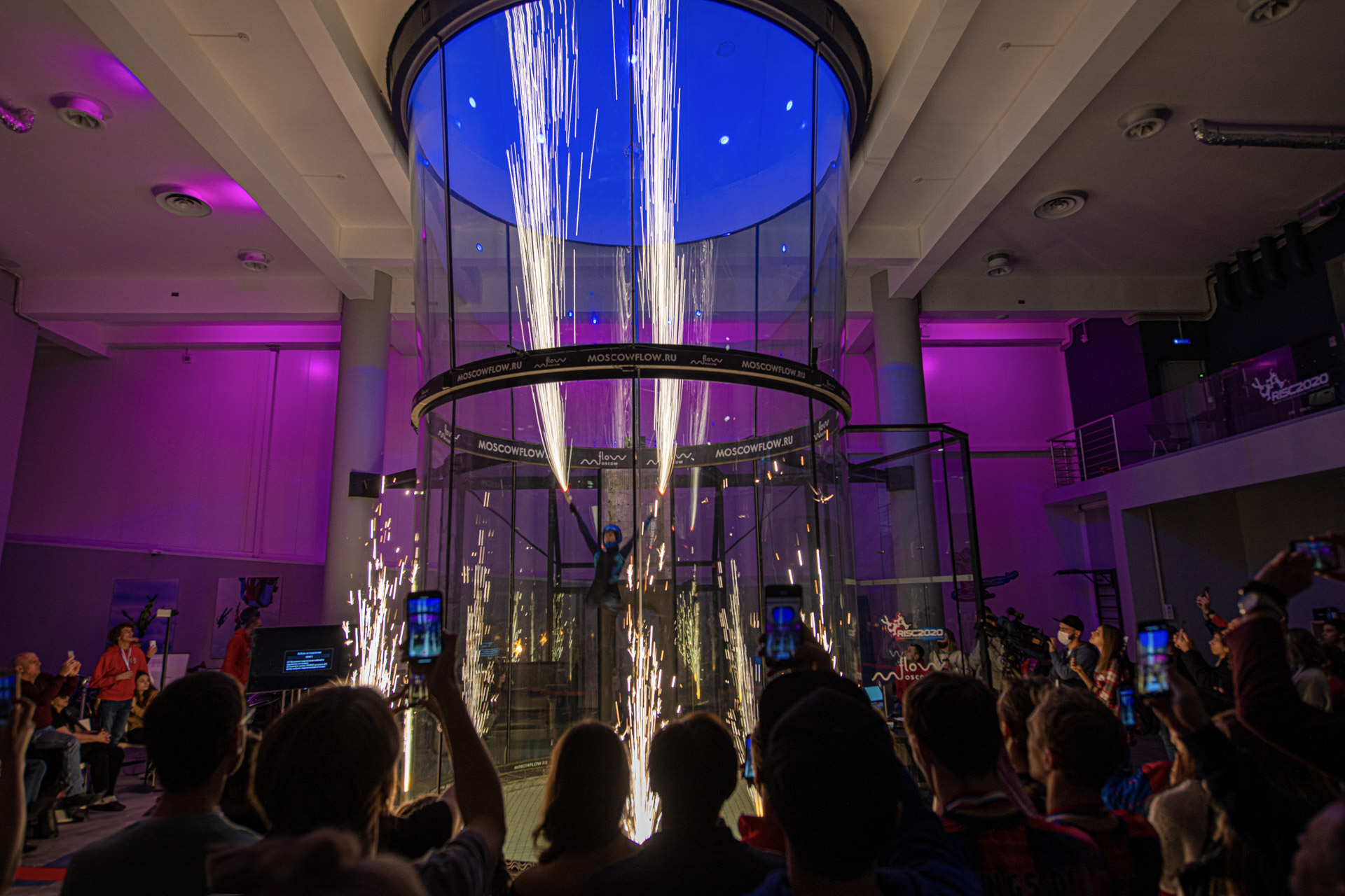 Thanks to its spacious glass chamber and advanced power capabilities, Flow Moscow regularly hosts national sports events and professional indoor skydiving training. The TT45 PRO wind tunnel delivers consistent airflow, advanced safety systems, and low noise levels, creating an optimal environment for both athletes and spectators.